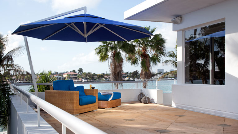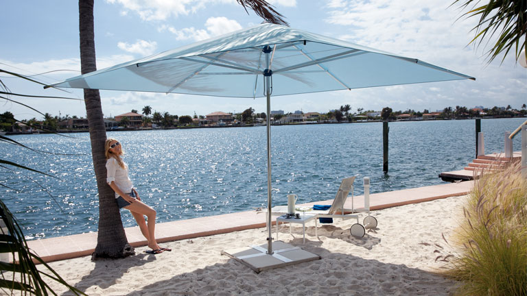 Spannt der professionelle Sonnenschirm sein Dach auf, spendet sein farbenfrohes Tuch bis zu 24 m² kühlenden Schatten für Sie und Ihre Gäste. Optionale Aluminiumkränze aus massivem Aluminium und Double-Layer-Streben aus verstärktem Aluminium sorgen dafür, dass Samara trotz Spannweiten von bis zu 5 m rund auch hohen Beanspruchungen standhält.