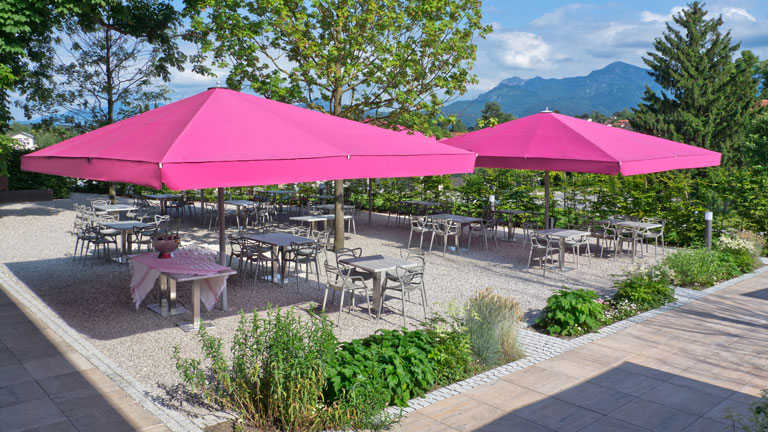 Beeindruckende Spannweiten von bis zu 7 m machen den repräsentativen Schattenspender zum Blickfang auf jeder Terrasse. Mit dem großen Sonnenschirm Big Ben signalisieren Sie Ihren Gästen schon von weitem: Hier sitzt man gemütlich und geborgen. Zudem kann Big Ben auch mit integriertem LED-Strebenlicht und innenliegender Verkabelung für Heizstrahler geliefert werden.