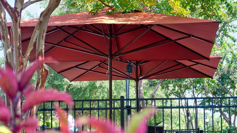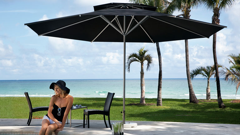 Spannt der professionelle Sonnenschirm sein Dach auf, spendet sein farbenfrohes Tuch bis zu 24 m² kühlenden Schatten für Sie und Ihre Gäste. Optionale Aluminiumkränze aus massivem Aluminium und Double-Layer-Streben aus verstärktem Aluminium sorgen dafür, dass Samara trotz Spannweiten von bis zu 5 m rund auch hohen Beanspruchungen standhält.